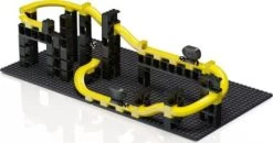 12 Holzbausteine doppelte 1er; 4 Holzbausteine doppelte 2er; 8 Holzbausteine 2er; 1 Bahnstein mit Kugelauslauf; 3 Bahnstein ; 3 Holzkugel groß; 1 Stapeltum-Standfuß
