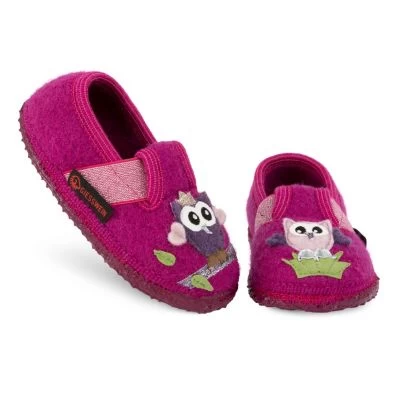 Reinschlüpfen und wohlfühlen. Der kuschelige Wollhausschuh namens Thulendorf ist so bequem, dass ihn die Kleinen gar nicht mehr ausziehen möchten. Die süße Eulen-Applikation verschafft sofort gute Laune. Der Gummibund macht den Ein- und Ausstieg bei diesem Schuh denkbar einfach. Verfügbar in den Größen 23-35.