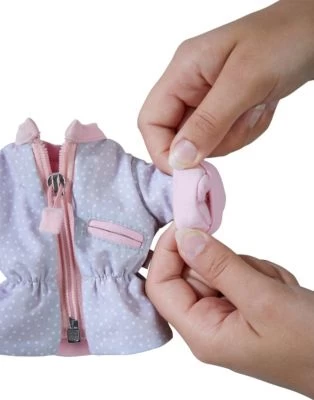 Die perfekte Puppenkleidung für Spiel-Abenteuer bei Wind und Wetter: das HABA Kleiderset Pünktchen-Parka. Die Puppenjacke mit rosa Kontrastdetails passt allen 32 cm großen Puppen von HABA. Auch ein rosa Stirnband ist in dem Puppenkleider-Set enthalten. Der Anorak für Puppen von HABA ist so gestaltet, dass Kleinkinder ihn leicht wechseln können. Mit einem robusten Reißverschluss lässt sich der sportliche Puppenmantel ganz einfach an- und ausziehen. Die Krempelärmel sind in der Länge variabel und verleihen dem Puppenmantel das besondere Etwas.